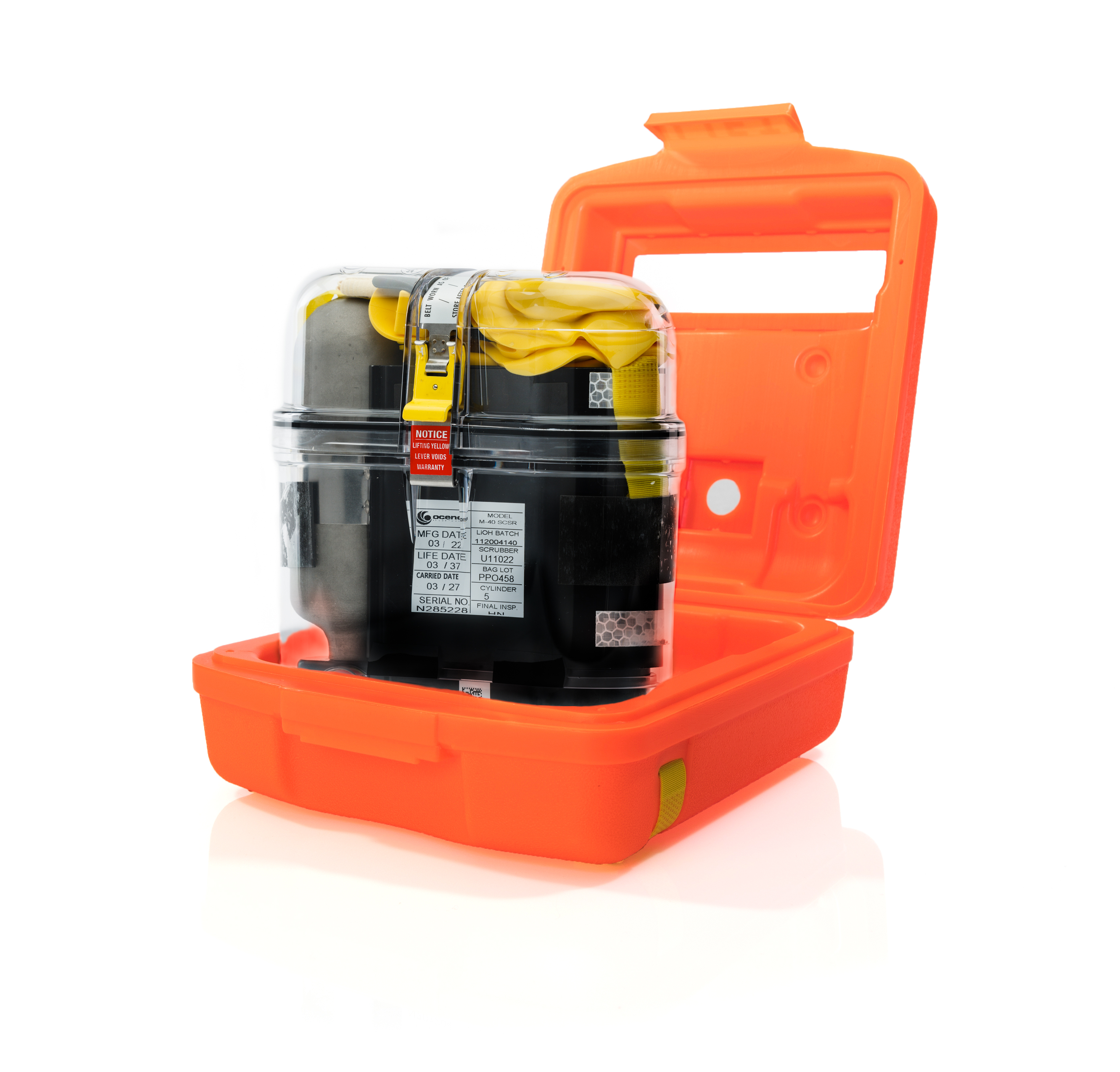 The Ocenco M-40 SCSR is a lightweight, ergonomically designed, belt-worn or storable compressed-oxygen self-contained self-rescuer. It provides immediate breathable air, independent of the surrounding atmosphere, for individuals escaping areas with toxic gas or oxygen deficiency. Rated for 30 minutes of use in accordance with EN 13794:2002, the M-40 prioritizes safety while ensuring unparalleled ease of daily use. When worn on a belt, the M-40 is the lightest and most compact 30-minute SCSR available.